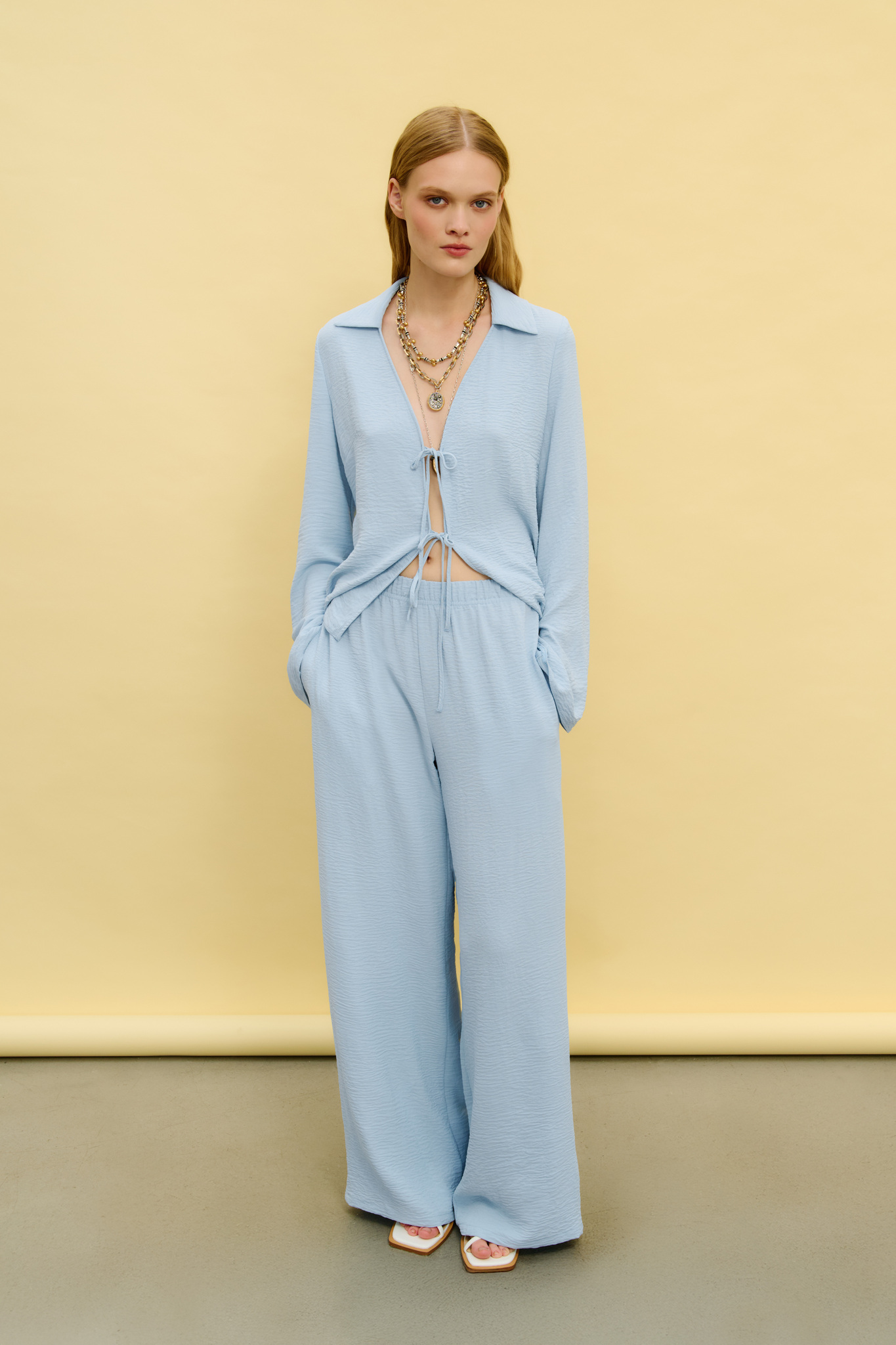 Эти брюки из жатого хлопка станут вашим лучшим другом этим летом! Благодаря уникальному составу тканей они обеспечат вам комфорт и свободу движений весь день. Выберите свой идеальный размер - от XXS до L - и насладитесь стильным внешним видом голубых брюк. Они отлично подойдут как для повседневной носки, так и для особых случаев. Не упустите шанс стать обладательницей этой модной новинки летней коллекции 2025 года.