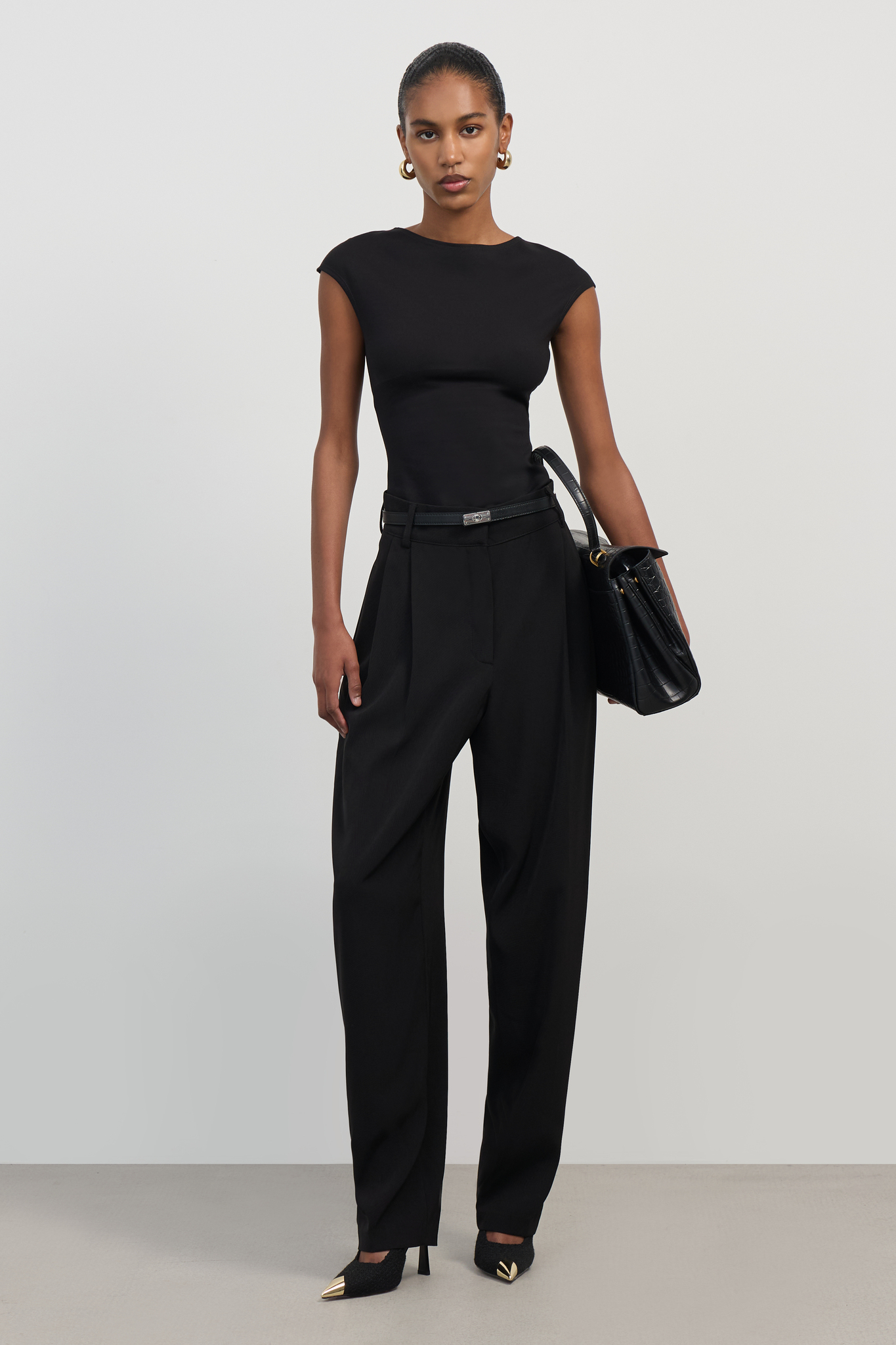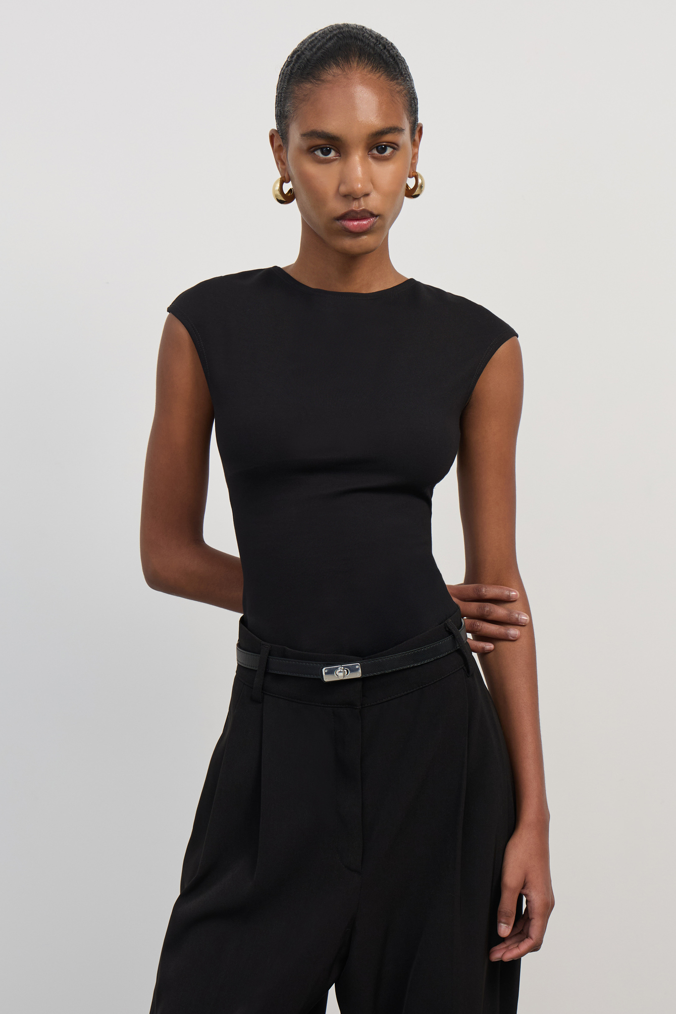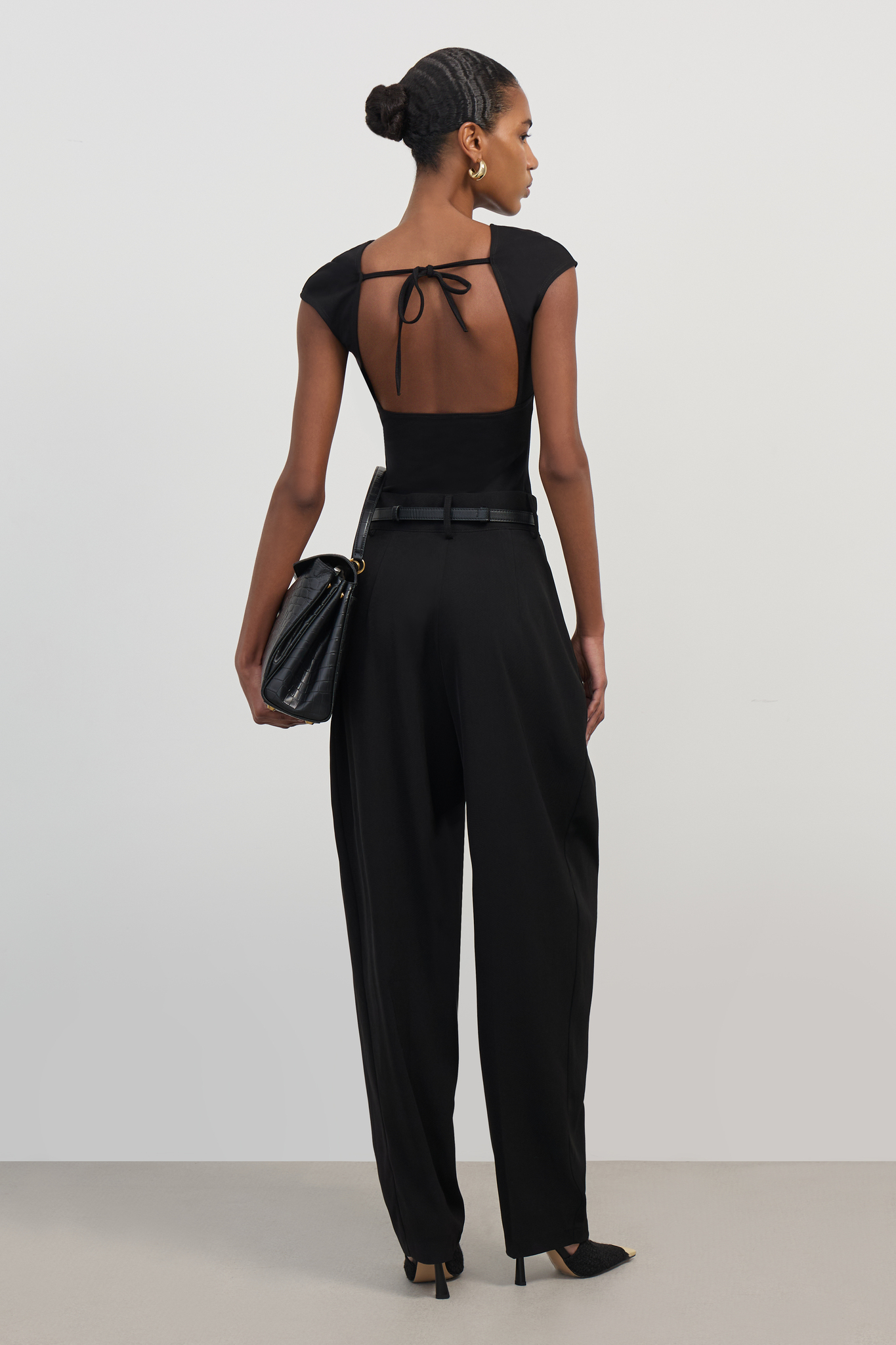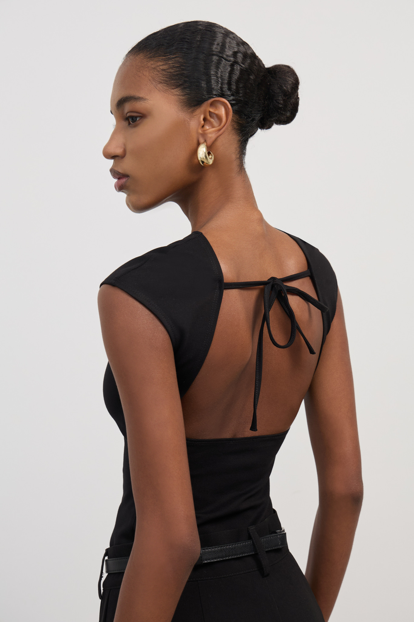 Черный топ из нежного трикотажного полотна – стильный акцент вашего гардероба! Откройте спину и покажите фигуру во всей красе благодаря открытому дизайну. Изящная длина подчеркивает талию и визуально удлиняет ноги. Эластичность материала позволяет чувствовать себя комфортно весь день, а натуральные волокна дарят коже приятное ощущение свежести. Идеальный выбор для летних вечеров и праздничных мероприятий! Подходит для ношения как отдельно, так и под жакет или пальто.