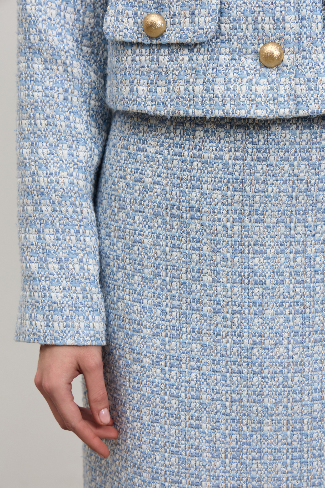 Эта юбка из роскошного твидового материала станет настоящей находкой вашего гардероба! Элегантность вискозы, мягкость тесила и мерцание люрекса создают неповторимый стиль и подчеркивают индивидуальность. Идеальная посадка благодаря точным замерам по размерному ряду – вы будете чувствовать себя комфортно весь день! Универсальный фасон позволяет сочетать как со строгими блузами для деловых встреч, так и с уютными свитерами для прогулок. Идеально подходит для холодного времени года.